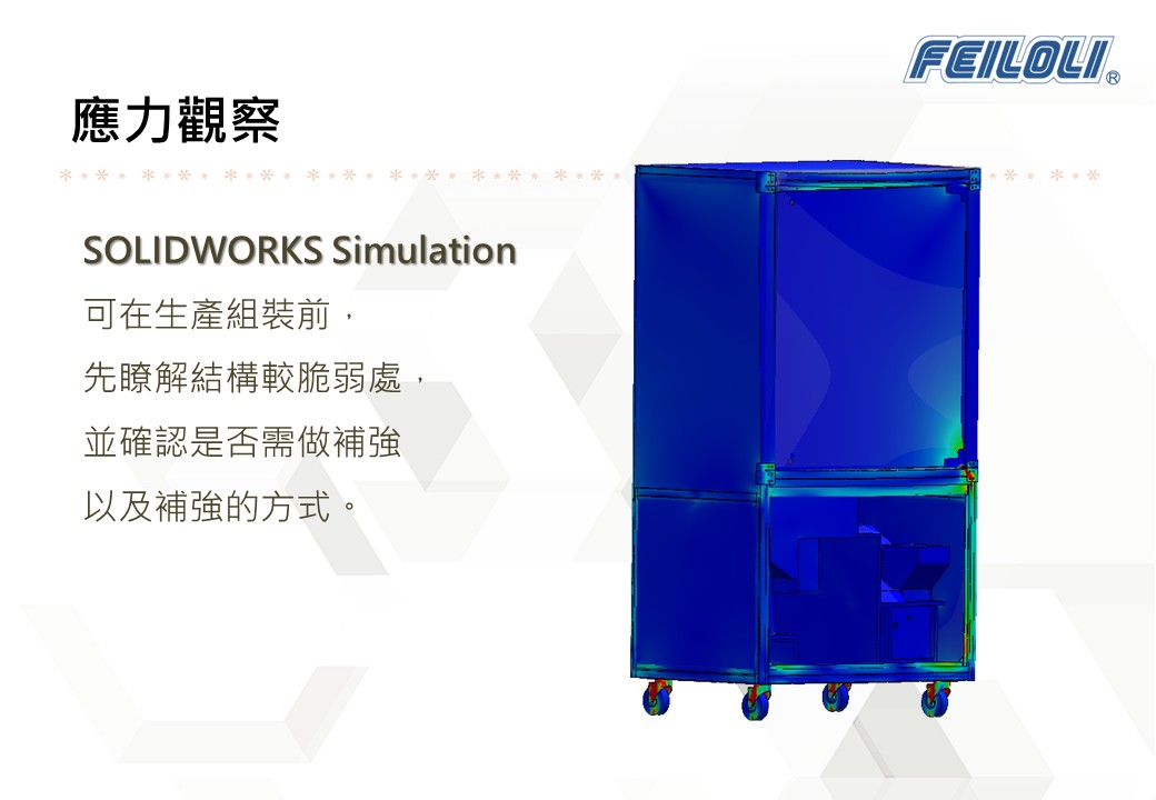 飛絡力電子運用分析工具 SOLIDWORKS Simulation 進行模擬,成功優化台灣在地開發的娃娃機台結構與承重設計。透過模擬預測變形與應力分布,提升產品穩定性、縮短開發時程,同時兼顧美學與實用性。其在模擬導入與研發流程改善上的成果顯著,亦為 2025 實威國際 x 達梭系統設計驗證日 Design Validation Day 的成功案例客戶代表。